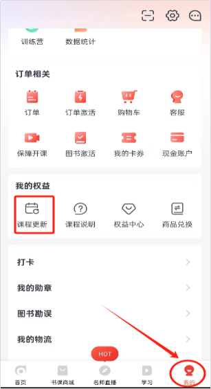 登錄【會(huì)計(jì)云課堂】APP→右下角“我的”→【我的權(quán)益】中“課程更新”,可以選擇科目、老師查看對(duì)應(yīng)進(jìn)度,并且可以訂閱更新通知(點(diǎn)擊圖片查看大圖)