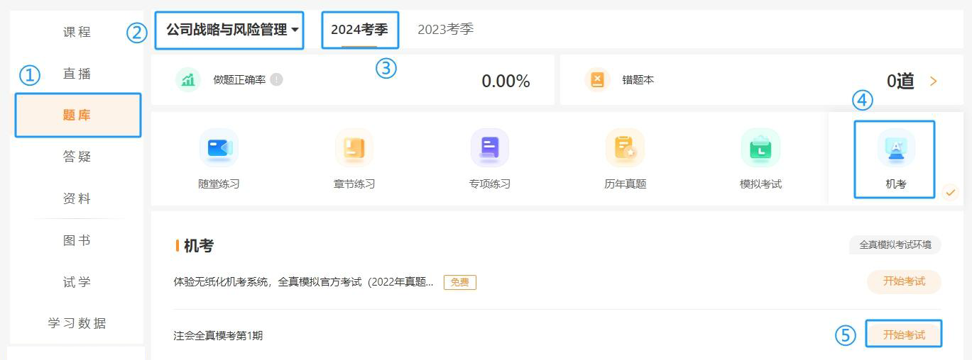 領(lǐng)卷后,考生可進(jìn)入東奧【學(xué)習(xí)中心】完成機(jī)考。進(jìn)入【學(xué)習(xí)中心】后在左側(cè)菜單選擇【題庫(kù)】,篩選考試【科目】和【考季】,找到【機(jī)考】點(diǎn)擊進(jìn)入,而后點(diǎn)擊【開始考試】。點(diǎn)擊下圖查看步驟圖解!學(xué)習(xí)中心點(diǎn)擊進(jìn)入>>