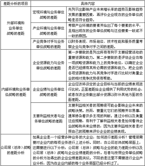 差距分析可以從業(yè)務(wù)單位戰(zhàn)略與公司層戰(zhàn)略兩個(gè)層次展開(kāi)。