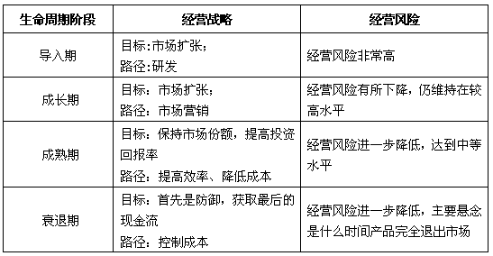 【相關(guān)鏈接2】產(chǎn)品不同生命周期階段,不同經(jīng)營(yíng)戰(zhàn)略和經(jīng)營(yíng)風(fēng)險(xiǎn)比較
