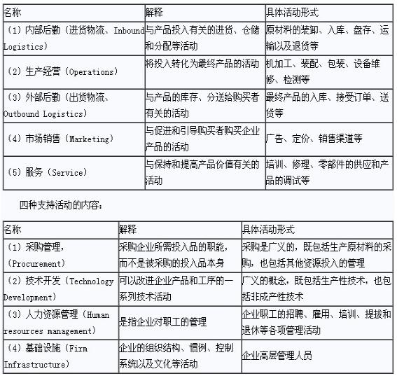 (一)價(jià)值鏈:企業(yè)每項(xiàng)生產(chǎn)經(jīng)營活動(dòng)都是其創(chuàng)造價(jià)值的經(jīng)濟(jì)活動(dòng);那么,企業(yè)所有的互不相同但又相互關(guān)聯(lián)的生產(chǎn)經(jīng)營活動(dòng),便構(gòu)成了創(chuàng)造價(jià)值的一個(gè)動(dòng)態(tài)過程,即價(jià)值鏈。