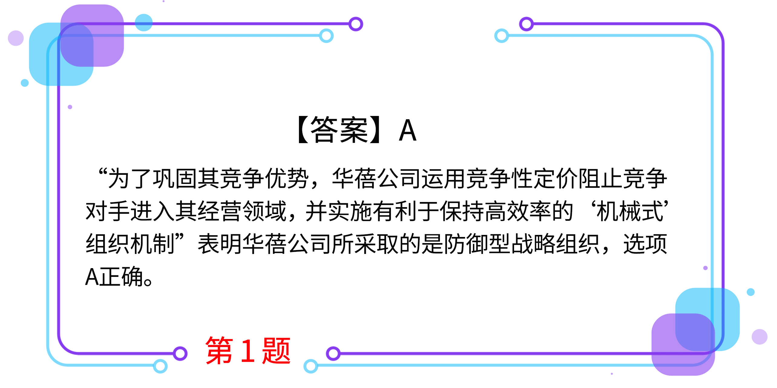 1.華蓓公司是Y市一家生產(chǎn)嬰幼兒用品的企業(yè)。多年來(lái)公司在Y市嬰幼兒用品市場(chǎng)擁有穩(wěn)定的市場(chǎng)占有率。為了鞏固其競(jìng)爭(zhēng)優(yōu)勢(shì),華蓓公司運(yùn)用競(jìng)爭(zhēng)性定價(jià)阻止競(jìng)爭(zhēng)對(duì)手進(jìn)入其經(jīng)營(yíng)領(lǐng)域,并實(shí)施有利于保持高效率的“機(jī)械式”組織機(jī)制。華蓓公司所采取的組織的戰(zhàn)略類(lèi)型屬于( )。(2019年)