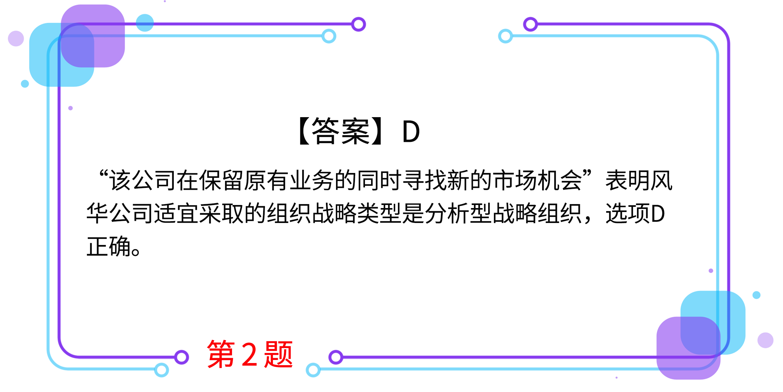 2.風(fēng)華公司的主營(yíng)業(yè)務(wù)是生產(chǎn)、銷(xiāo)售體育運(yùn)動(dòng)器材,從去年起,該公司在保留原有業(yè)務(wù)的同時(shí)尋找新的市場(chǎng)機(jī)會(huì),開(kāi)發(fā)出適合個(gè)人使用的運(yùn)動(dòng)健康補(bǔ)測(cè)儀并嘗試性投放市場(chǎng),該儀器可隨時(shí)把使用者在運(yùn)動(dòng)中的有關(guān)生物指數(shù)顯示并記錄下來(lái),從而幫助使用者了解自己的健康狀況并選擇適當(dāng)?shù)倪\(yùn)動(dòng)方式,風(fēng)華公司適宜采取的組織戰(zhàn)略類(lèi)型是( )。(2018年)