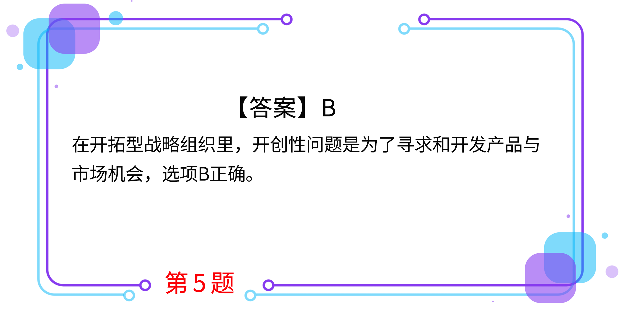 5.萬(wàn)康公司是一家手機(jī)制造企業(yè),隨著市場(chǎng)競(jìng)爭(zhēng)越來(lái)越激烈,萬(wàn)康公司的收益逐漸降低。為了進(jìn)一步尋求市場(chǎng)機(jī)會(huì),萬(wàn)康公司加大對(duì)新產(chǎn)品開(kāi)發(fā)的投入力度。萬(wàn)康公司適宜采取的組織戰(zhàn)略類(lèi)型是( )。