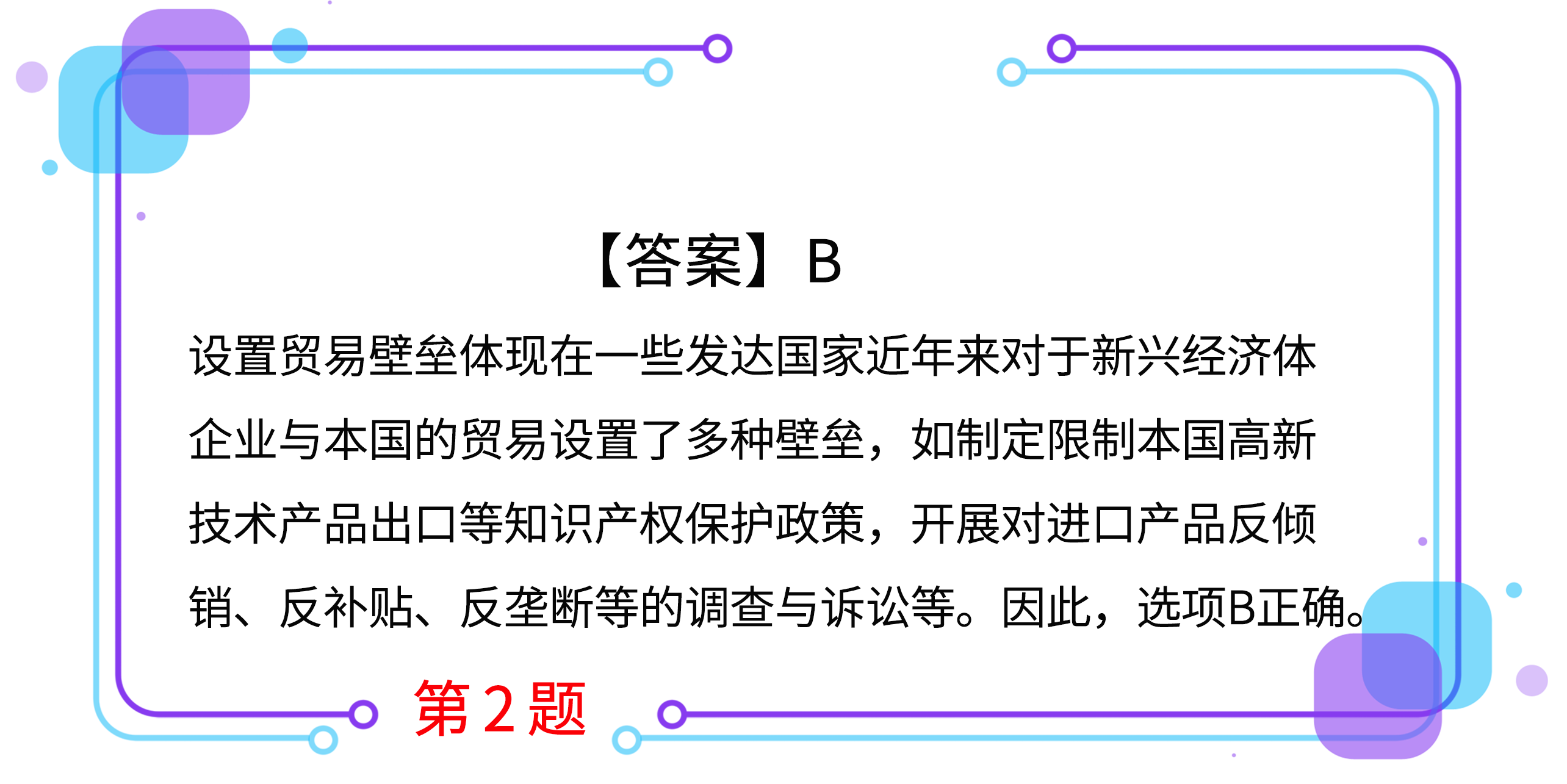 2.安徽新華聯(lián)新型材料公司是新華聯(lián)集團(tuán)旗下的石英石材料生產(chǎn)企業(yè)。2018年4月17日,該企業(yè)被美國(guó)列入反傾銷企業(yè)名單,并對(duì)其產(chǎn)品進(jìn)行反傾銷調(diào)查,這對(duì)該企業(yè)在美國(guó)的銷售產(chǎn)生了致命的打擊。上述內(nèi)容體現(xiàn)了政治風(fēng)險(xiǎn)中的( )。