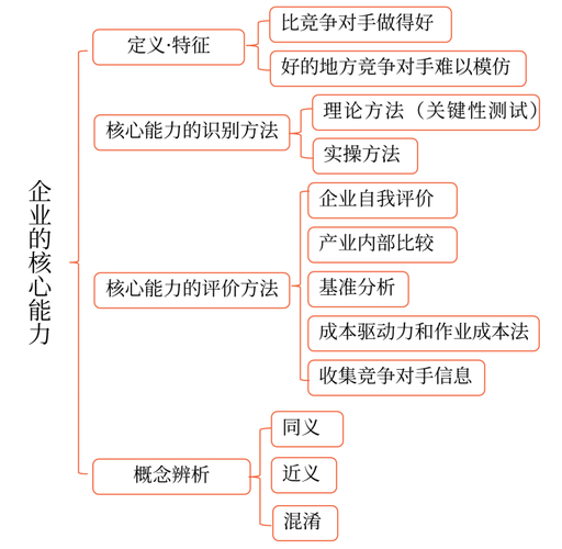 1.企業(yè)核心能力可以是完成某項(xiàng)活動所需的優(yōu)秀技能,也可以是在一定范圍和深度上的企業(yè)的技術(shù)訣竅,或者是那些能夠形成很大競爭價(jià)值的一系列具體生產(chǎn)技能的組合。