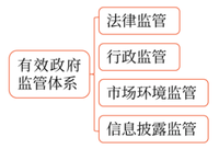 市場環(huán)境監(jiān)管 | ①市場環(huán)境監(jiān)管是指政府通過對市場環(huán)境的建設來達到公司治理的目的。 ②良好的公司治理依賴充分競爭和完備的市場體系,這些是有效公司治理體系的重要組成部分。 ③良好的市場體系,必須要依靠政府去培育和建設。 |