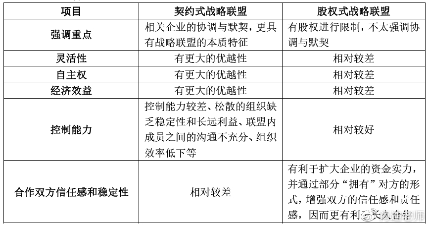 (3)戰(zhàn)略聯(lián)盟是指兩個或兩個以上經(jīng)營實體之間為了達到某種戰(zhàn)略目的而建立的一種合作關系。