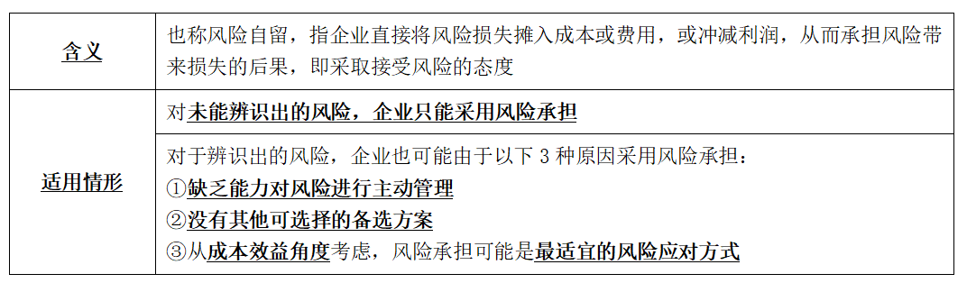 對(duì)于企業(yè)的重大風(fēng)險(xiǎn),不應(yīng)采用風(fēng)險(xiǎn)承擔(dān)。