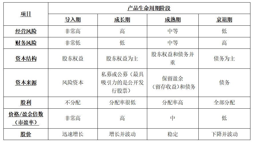 (1)基于產(chǎn)品生命周期的財務戰(zhàn)略選擇
