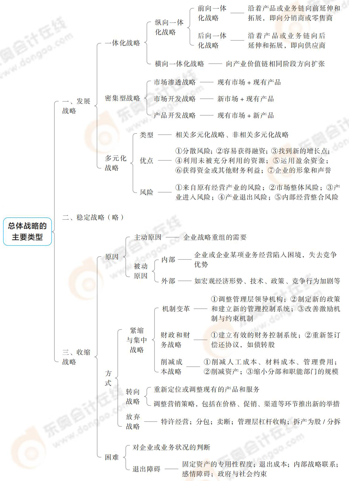 第三章戰(zhàn)略選擇是注冊(cè)會(huì)計(jì)師《戰(zhàn)略》科目的重要章節(jié),該章節(jié)的學(xué)習(xí)難度高,考試重要性同樣也非常高,這樣一個(gè)雙高章節(jié),對(duì)考生們的備考也有更高的要求,想要吃透弄懂必須要花費(fèi)更多的時(shí)間精力,下文整理了本章總體戰(zhàn)略相關(guān)的復(fù)盤(pán)導(dǎo)圖,一起來(lái)看!