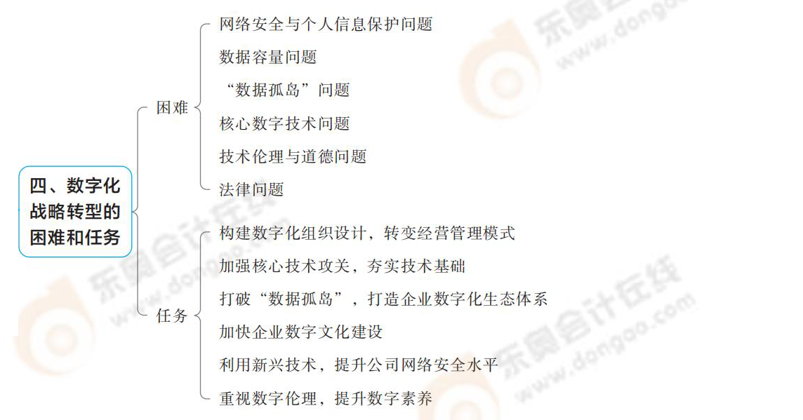 2025年注冊會計師戰(zhàn)略科目的預(yù)習(xí)備考來到了第四章,進度較快的考生已經(jīng)開始了二輪預(yù)習(xí)。為了方便考生們?nèi)鎸W(xué)習(xí)知識點,串聯(lián)教材的知識框架,東奧為各位考生整理了戰(zhàn)略科目的考點導(dǎo)圖,下文導(dǎo)圖涉及知識點公司戰(zhàn)略與數(shù)字化技術(shù)的相關(guān)內(nèi)容,各位考生一起來看!