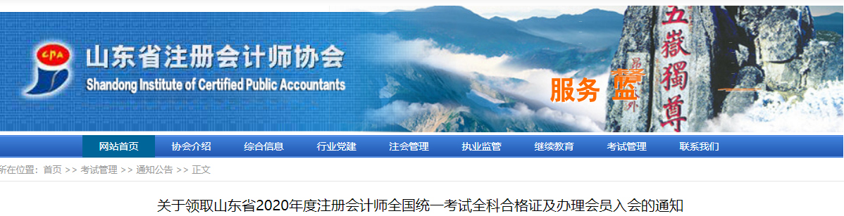 關(guān)于領(lǐng)取山東省2020年度注冊會計師全國統(tǒng)一考試全科合格證及辦理會員入會的通知