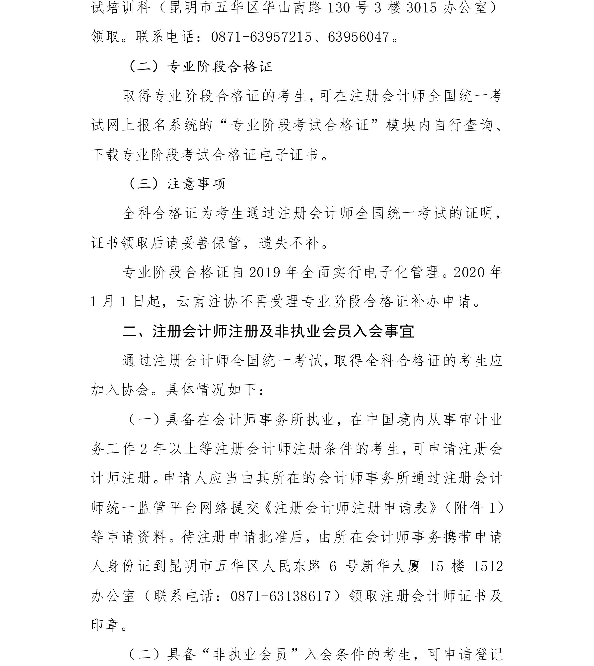 正文:云南省注冊會計師協(xié)會關于領取2022年度注冊會計師全國統(tǒng)一考試全科合格證和注冊會計師注冊等事宜的通告