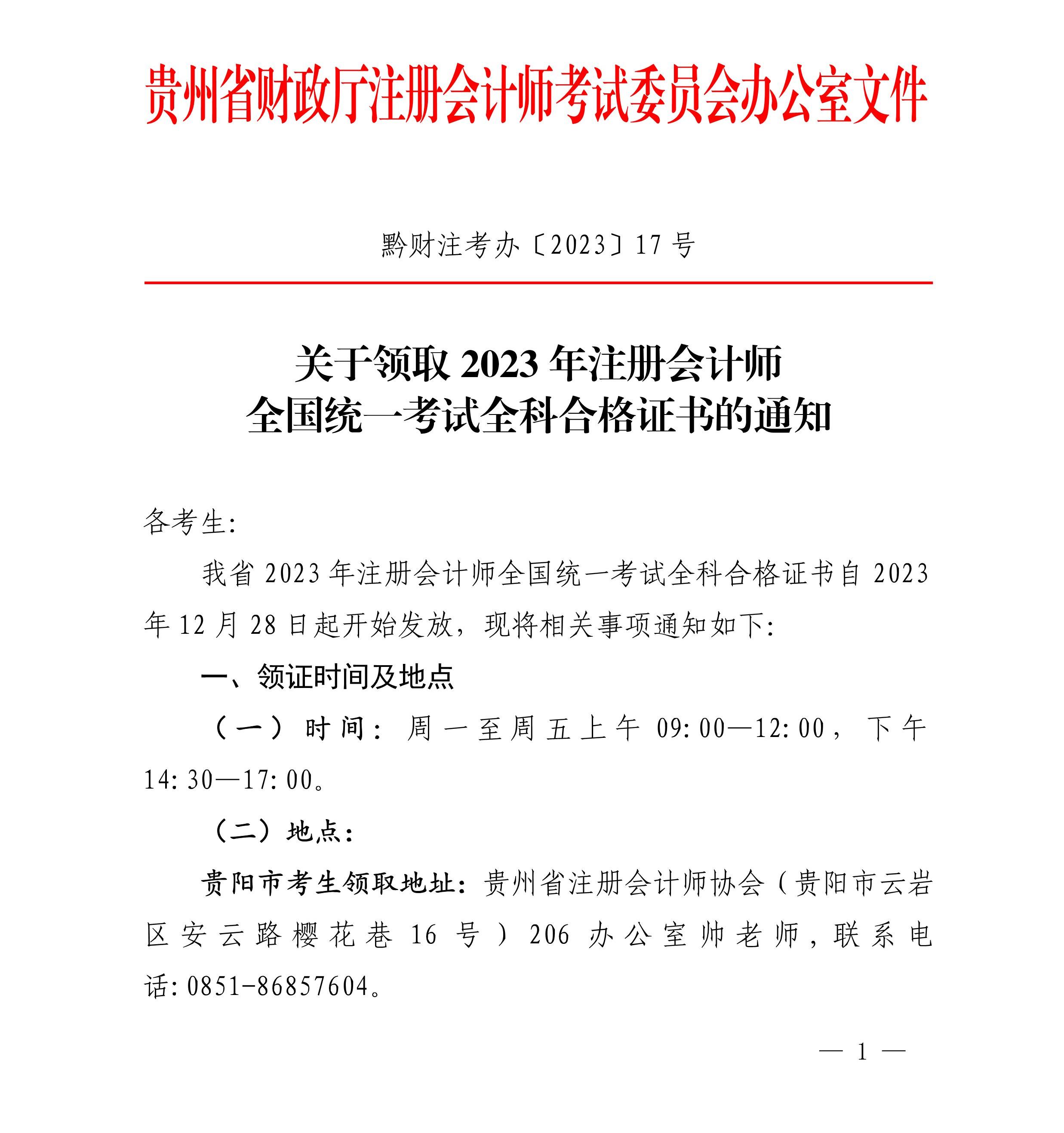 貴州:關(guān)于領(lǐng)取2023年注會(huì)考試全科合格證書的通知
