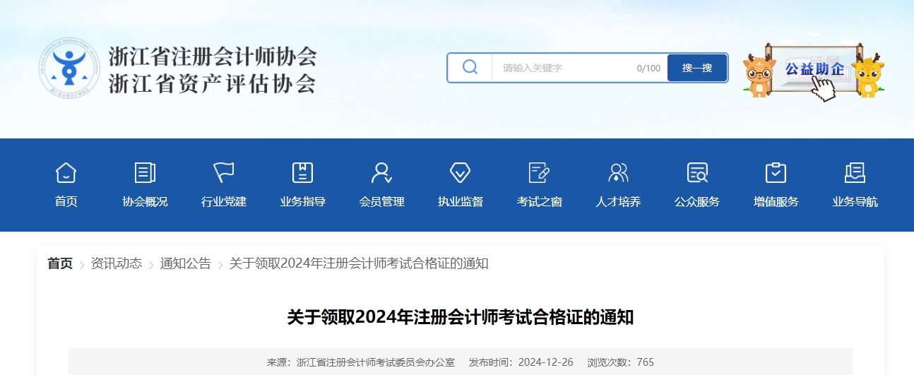 浙江注協(xié)發(fā)布關(guān)于領(lǐng)取2024年注冊會計(jì)師考試合格證的通知