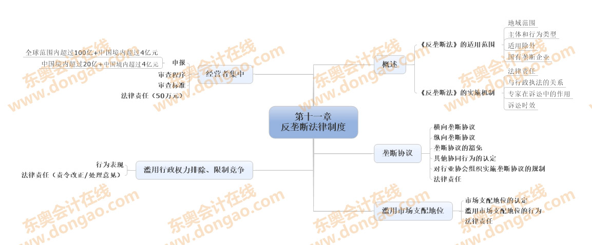 【東奧小編】2014年注冊(cè)會(huì)計(jì)師考試正式進(jìn)入基礎(chǔ)備考階段,注會(huì)知識(shí)點(diǎn)繁雜細(xì)碎,想要全面掌握注會(huì)各科目的知識(shí),需要科學(xué)高效的學(xué)習(xí)方法,思維導(dǎo)圖正是一種非常適合注會(huì)復(fù)習(xí)的學(xué)習(xí)方法,正確利用思維導(dǎo)圖,不僅能使自己積極進(jìn)行知識(shí)點(diǎn)總結(jié),形成清晰的思路,還能對(duì)知識(shí)點(diǎn)進(jìn)行快速查漏補(bǔ)缺。以下是2014《經(jīng)濟(jì)法》第十一章反壟斷法思維導(dǎo)圖: