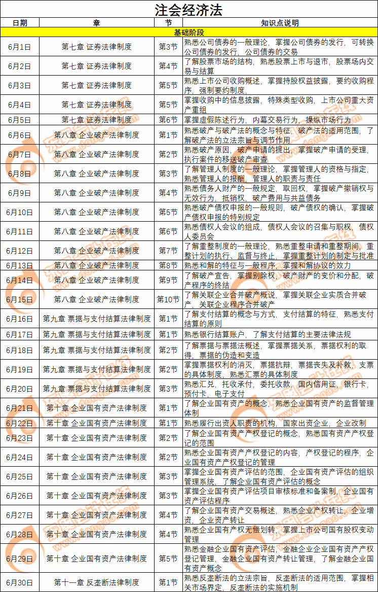 2020年注冊會計師《經(jīng)濟(jì)法》6月份學(xué)習(xí)日歷
