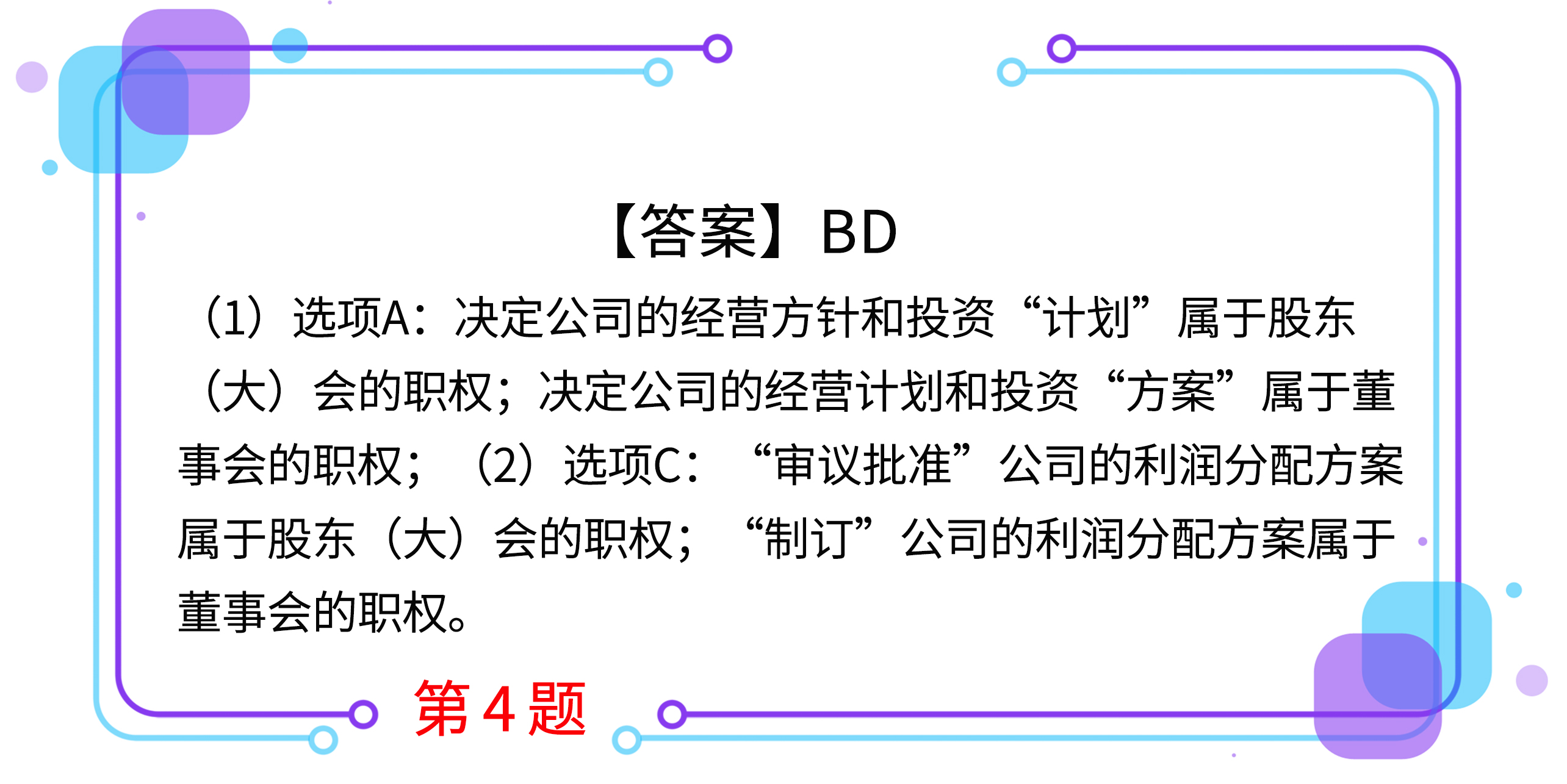3.根據(jù)公司法律制度的規(guī)定,下列各項(xiàng)中,有權(quán)制訂公司年度財(cái)務(wù)預(yù)算、決算方案的是( )。(2019年)