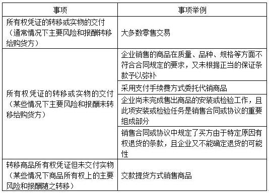 (1) 企業(yè)已將商品所有權(quán)上的主要風(fēng)險和報酬轉(zhuǎn)移給購貨方