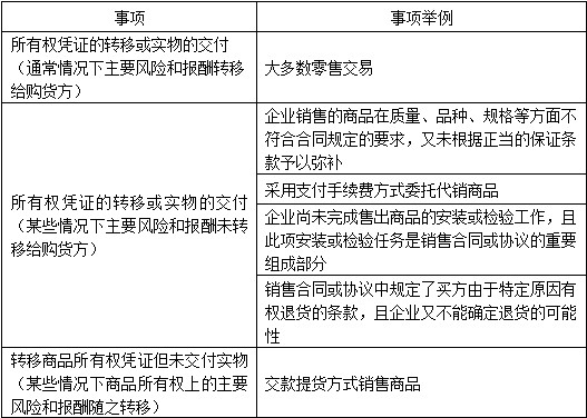 (1) 企業(yè)已將商品所有權(quán)上的主要風(fēng)險(xiǎn)和報(bào)酬轉(zhuǎn)移給購(gòu)貨方