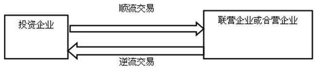 (3)投資企業(yè)在采用權(quán)益法確認(rèn)投資收益時(shí),應(yīng)抵消與其聯(lián)營(yíng)企業(yè)及合營(yíng)企業(yè)之間發(fā)生的未實(shí)現(xiàn)內(nèi)部交易損益。該未實(shí)現(xiàn)內(nèi)部交易既包括順流交易也包括逆流交易。順流交易和逆流交易圖示如下: