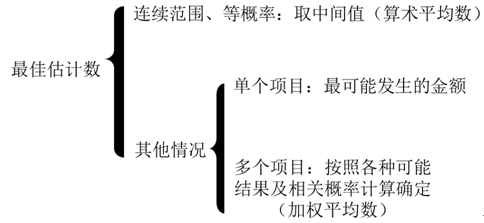 預(yù)計(jì)負(fù)債應(yīng)當(dāng)按照履行相關(guān)現(xiàn)時(shí)義務(wù)所需支出的最佳估計(jì)數(shù)進(jìn)行初始計(jì)量,圖示如下: