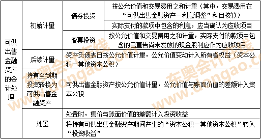 復(fù)習(xí)點(diǎn)撥:本考點(diǎn)太重要了,年年必考,不僅可以獨(dú)立出選擇題,也可以結(jié)合其他考點(diǎn)在綜合題里考,考生可以根據(jù)以下表格記憶可供出售金融資產(chǎn)初始計(jì)量、后續(xù)計(jì)量、持有至到期投資重分類為可供出售金融資產(chǎn)和出售的會(huì)計(jì)分錄,再次提醒考生務(wù)必全面掌握本考點(diǎn)。