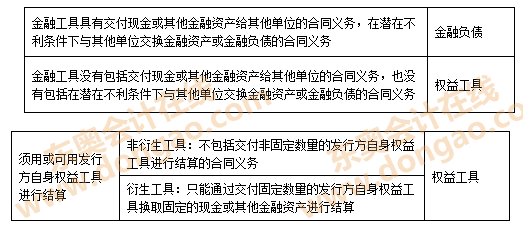 權(quán)益工具與金融負債的區(qū)分如下表所示: