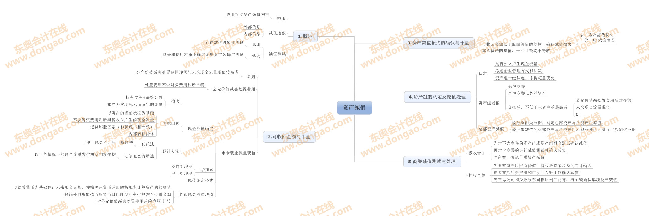 【東奧小編】2014年注冊會計師考試正式進入基礎備考階段,注會知識點繁雜細碎,想要全面掌握注會各科目的知識,需要科學高效的學習方法,思維導圖正是一種非常適合注會復習的學習方法,正確利用思維導圖,不僅能使自己積極進行知識點總結,形成清晰的思路,還能對知識點進行快速查漏補缺。以下是2014注會《會計》第八章資產(chǎn)減值思維導圖: