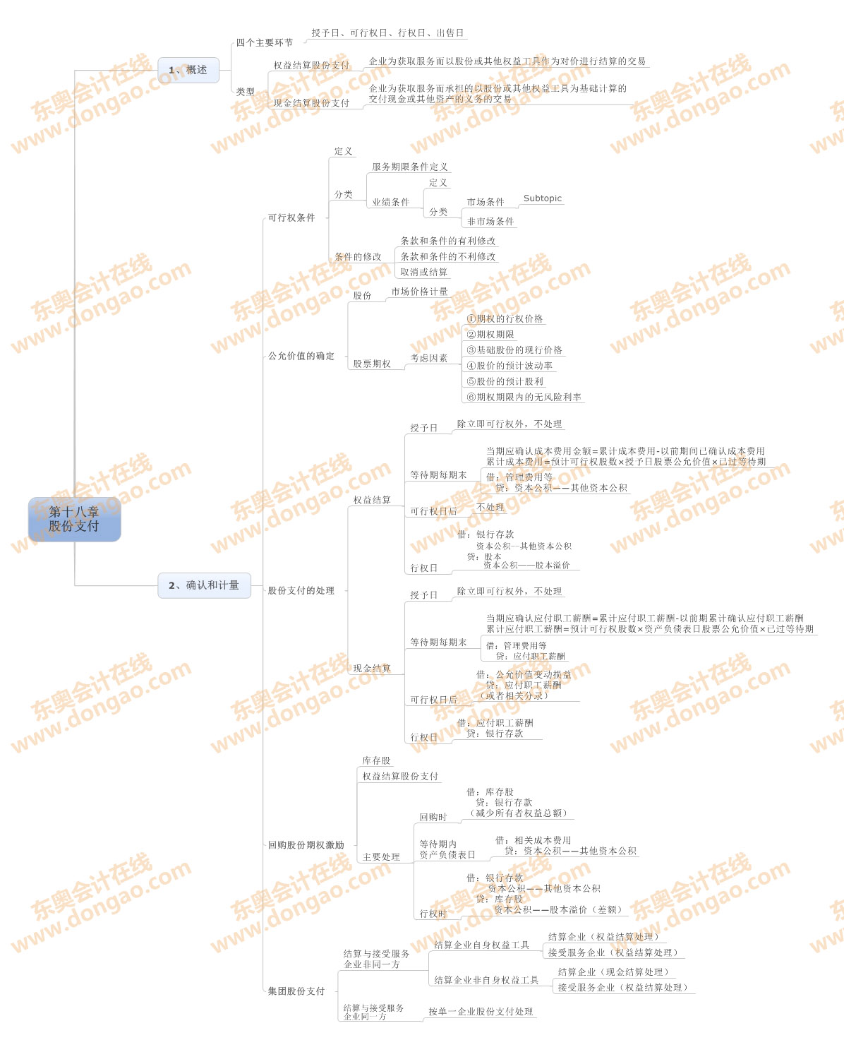 【東奧小編】2014年注冊(cè)會(huì)計(jì)師考試正式進(jìn)入基礎(chǔ)備考階段,注會(huì)知識(shí)點(diǎn)繁雜細(xì)碎,想要全面掌握注會(huì)各科目的知識(shí),需要科學(xué)高效的學(xué)習(xí)方法,思維導(dǎo)圖正是一種非常適合注會(huì)復(fù)習(xí)的學(xué)習(xí)方法,正確利用思維導(dǎo)圖,不僅能使自己積極進(jìn)行知識(shí)點(diǎn)總結(jié),形成清晰的思路,還能對(duì)知識(shí)點(diǎn)進(jìn)行快速查漏補(bǔ)缺。以下是2014注會(huì)《會(huì)計(jì)》第十八章股份支付思維導(dǎo)圖: