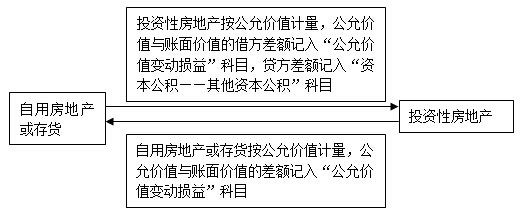 投資性產(chǎn)房地采用公允價(jià)值計(jì)量模式的房地產(chǎn)轉(zhuǎn)換如下圖所示: