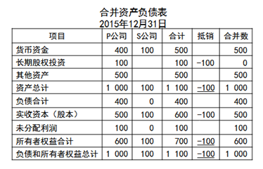 ①P公司投出100萬元貨幣資金形成S公司,作為企業(yè)集團(tuán)整體,相當(dāng)于貨幣資金100萬元由一個賬戶轉(zhuǎn)入另一個賬戶,P公司個別財務(wù)報表中的長期股權(quán)投資和S公司個別財務(wù)報表中的實(shí)收資本不應(yīng)存在,應(yīng)予抵銷。