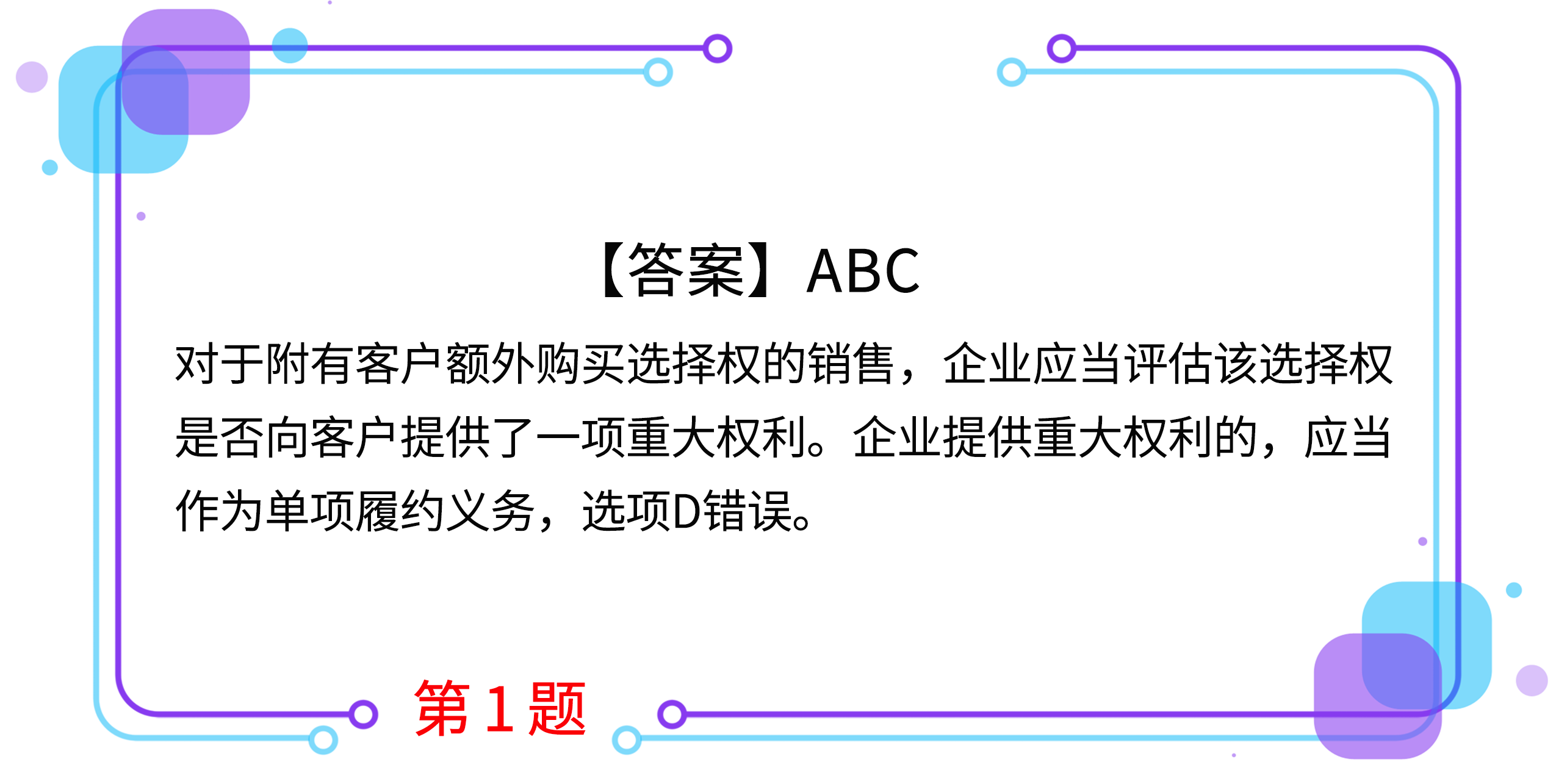 A.企業(yè)提供重大權(quán)利的,應(yīng)當(dāng)作為單項(xiàng)履約義務(wù)
