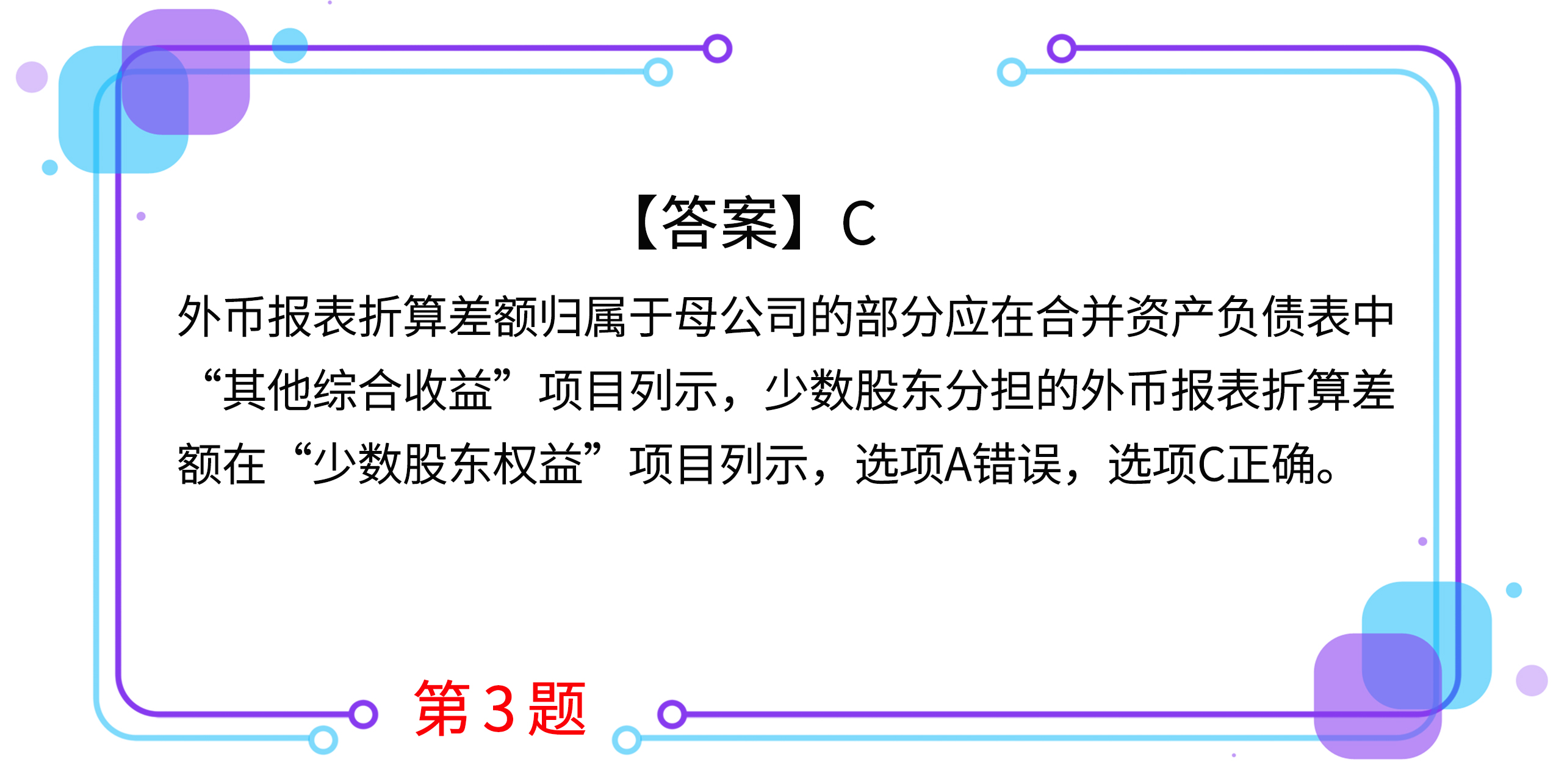 C.少數(shù)股東應(yīng)分擔(dān)的外幣財(cái)務(wù)報(bào)表折算差額在合并資產(chǎn)負(fù)債表少數(shù)股東權(quán)益項(xiàng)目列示