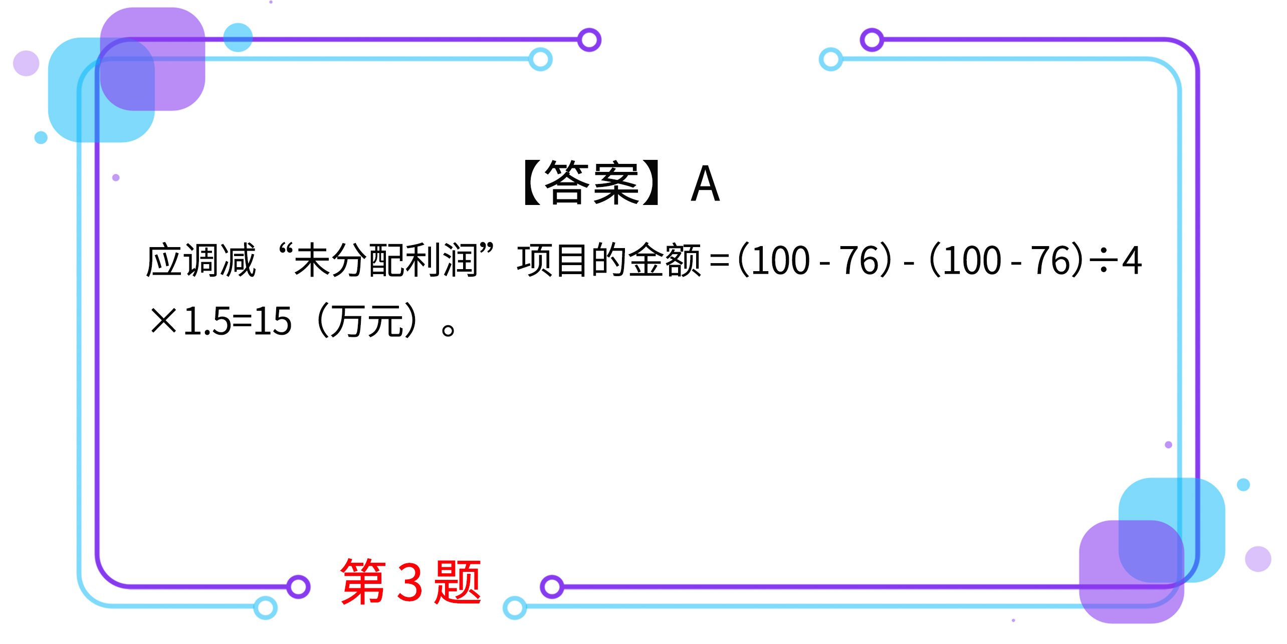 3.甲公司擁有乙和丙兩家子公司。2×18年6月15日,乙公司將其產(chǎn)品以市場價格銷售給丙公司,售價為100萬元(不考慮相關(guān)稅費),銷售成本為76萬元。丙公司購入后作為固定資產(chǎn)使用,按4年的期限、采用年限平均法對該項資產(chǎn)計提折舊,預(yù)計凈殘值為零。假定不考慮所得稅的影響,甲公司在編制2×19年年末合并資產(chǎn)負債表時,應(yīng)調(diào)減“未分配利潤”項目的金額為( )萬元。