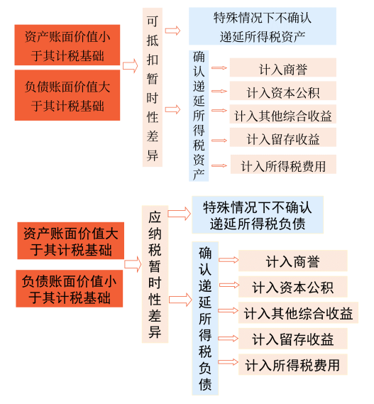 遞延所得稅資產(chǎn)和遞延所得稅負(fù)債的計量如下圖所示: