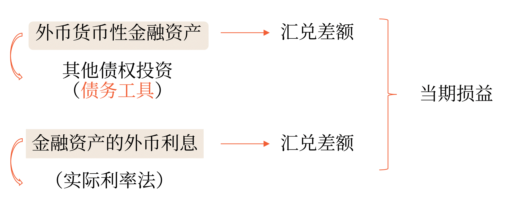 (4)以公允價(jià)值計(jì)量且其變動(dòng)計(jì)入其他綜合收益的外幣貨幣性金融資產(chǎn)(債務(wù)工具)形成的匯兌差額,應(yīng)當(dāng)計(jì)入當(dāng)期損益,且采用實(shí)際利率法計(jì)算的該金融資產(chǎn)的外幣利息產(chǎn)生的匯兌差額,應(yīng)當(dāng)計(jì)入當(dāng)期損益。外幣非貨幣性金融資產(chǎn)(權(quán)益工具)形成的匯兌差額,與其公允價(jià)值變動(dòng)一并計(jì)入其他綜合收益,但該金融資產(chǎn)的外幣現(xiàn)金股利產(chǎn)生的匯兌差額,應(yīng)當(dāng)計(jì)入當(dāng)期損益。