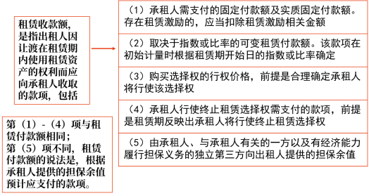 可變租賃付款額 | 出租人取得的與經(jīng)營租賃有關(guān)的可變租賃付款額,如果是與指數(shù)或比率掛鉤的,應(yīng)在租賃期開始日計入租賃收款額;除此之外的,應(yīng)當(dāng)在實際發(fā)生時計入當(dāng)期損益 |