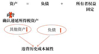 其原因在于該項(xiàng)交易不是企業(yè)合并,遞延所得稅資產(chǎn)不能對(duì)應(yīng)商譽(yù);因該項(xiàng)交易或事項(xiàng)發(fā)生時(shí)既不影響會(huì)計(jì)利潤(rùn),也不影響應(yīng)納稅所得額,所以遞延所得稅資產(chǎn)不能對(duì)應(yīng)“所得稅費(fèi)用”科目,從而不會(huì)影響留存收益,交易發(fā)生時(shí)產(chǎn)生暫時(shí)性差異的業(yè)務(wù)也不會(huì)涉及股本(或?qū)嵤召Y本)、資本公積和其他綜合收益,因此遞延所得稅資產(chǎn)不能對(duì)應(yīng)所有者權(quán)益。若確認(rèn)遞延所得稅資產(chǎn),為使會(huì)計(jì)等式平衡,則只能增加負(fù)債的價(jià)值或減少其他資產(chǎn)的價(jià)值,這種會(huì)計(jì)處理違背歷史成本計(jì)量屬性,因此不確認(rèn)遞延所得稅資產(chǎn)。