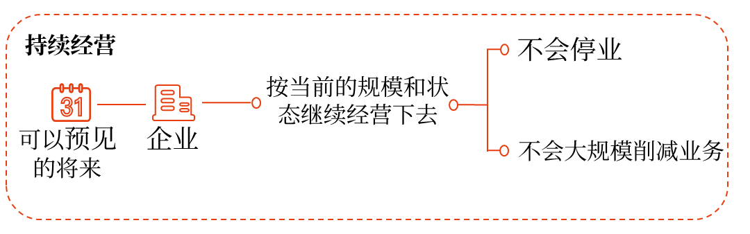 持續(xù)經(jīng)營,是指在可以預(yù)見的將來,企業(yè)將會按當(dāng)前的規(guī)模和狀態(tài)繼續(xù)經(jīng)營下去,不會停業(yè),也不會大規(guī)模削減業(yè)務(wù)。