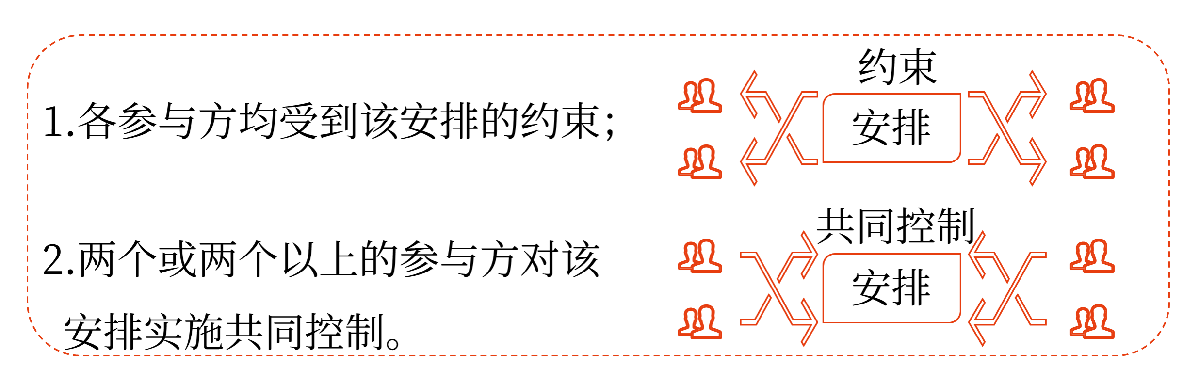 如果所有參與方或一組參與方必須一致行動才能決定某項安排的相關(guān)活動,則稱所有參與方或一組參與方集體控制該安排。