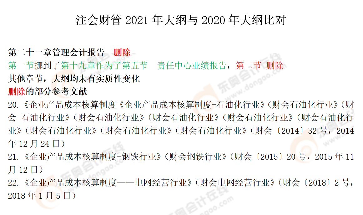 注會(huì)考試大綱是考生備考必不可少的學(xué)習(xí)資料之一,2021年注會(huì)考試大綱已經(jīng)公布,今年的考綱發(fā)生了哪些變化呢?東奧小編為大家整理了各科目考綱變化對(duì)比,快來(lái)了解一下吧!