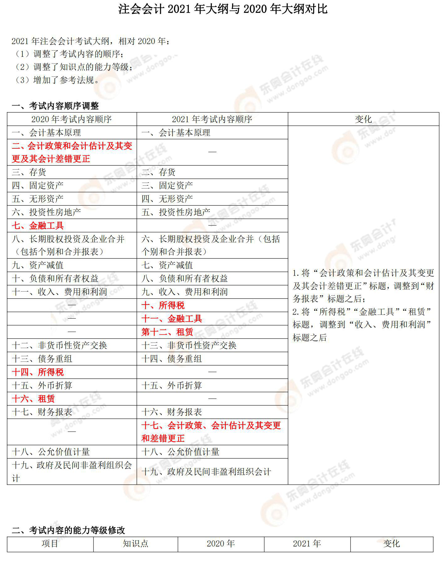 說(shuō)明:因考試政策、內(nèi)容不斷變化與調(diào)整,東奧會(huì)計(jì)在線(xiàn)提供的以上注會(huì)考試大綱變化對(duì)比等信息僅供參考,如有異議,請(qǐng)考生以權(quán)威部門(mén)公布的內(nèi)容為準(zhǔn)!