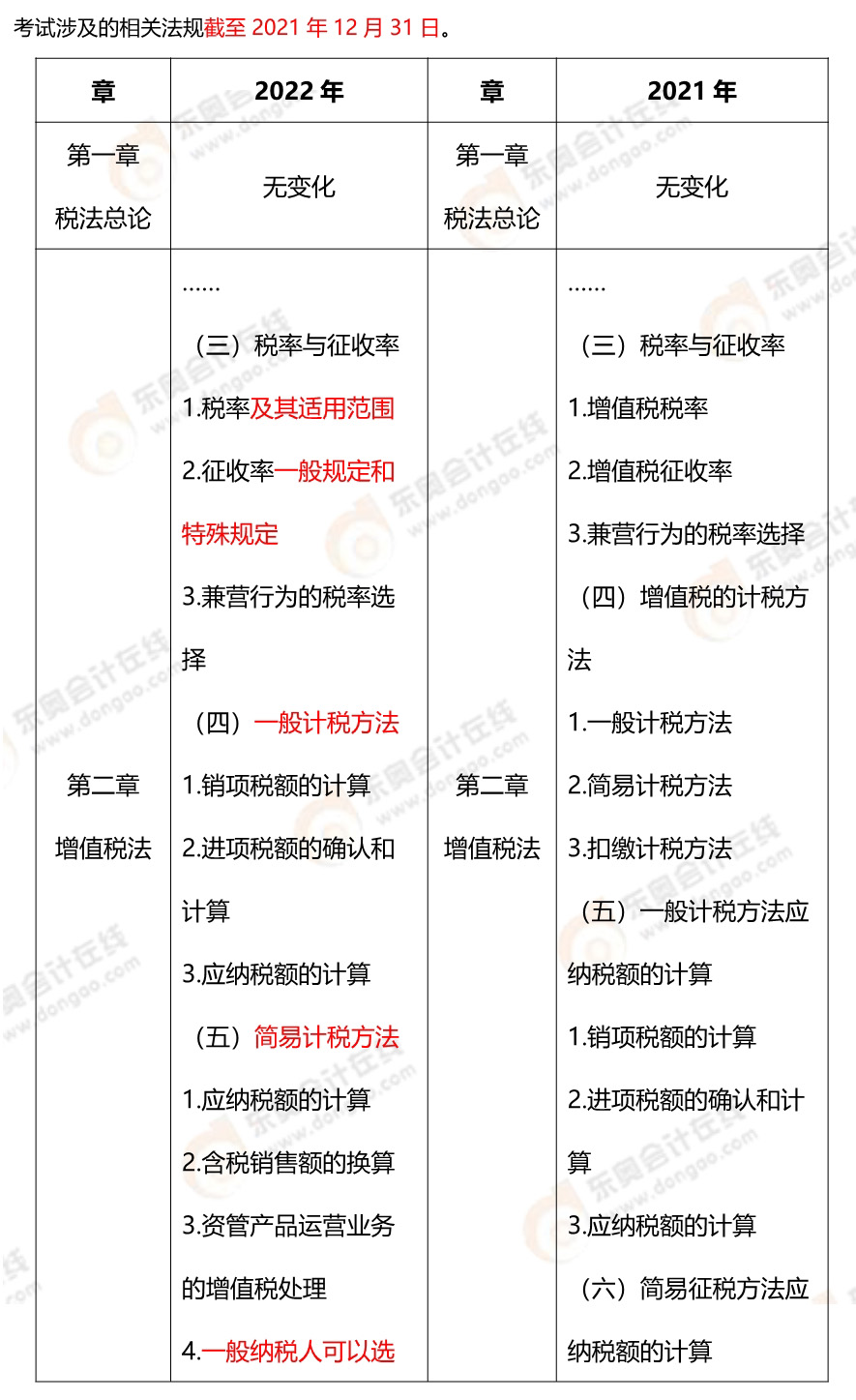 二、2022年注冊會(huì)計(jì)師稅法考綱變化對(duì)比
