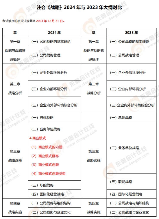2024注會(huì)考試大綱已經(jīng)下發(fā),注會(huì)六科均有變動(dòng),知識(shí)內(nèi)容有增有減,信息量很大。東奧特為報(bào)考注會(huì)《戰(zhàn)略》科目的同學(xué),單獨(dú)提煉出《戰(zhàn)略》考綱的變化,一起看一下吧。