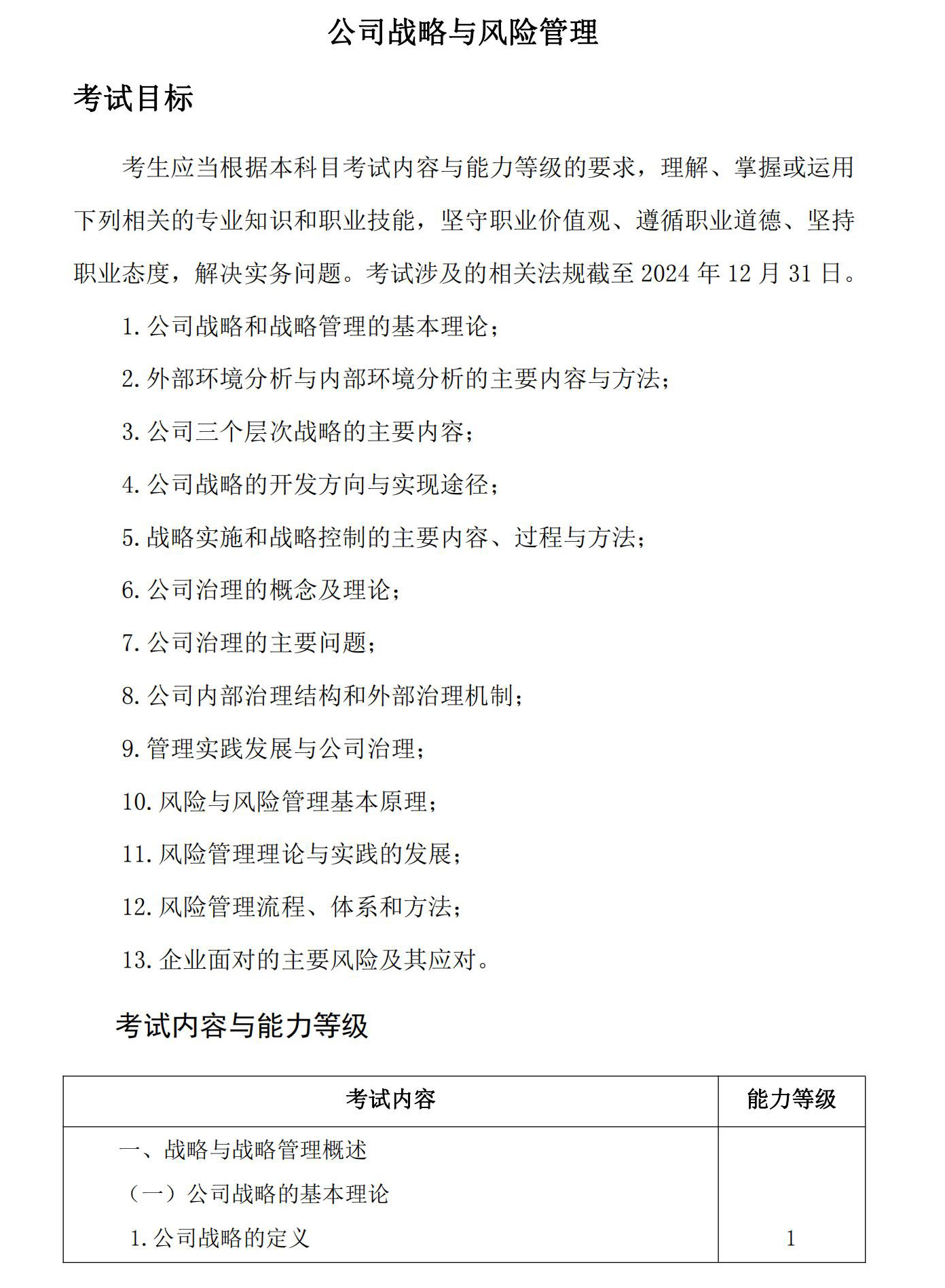 下載完整版《公司戰(zhàn)略與風(fēng)險管理》考試大綱