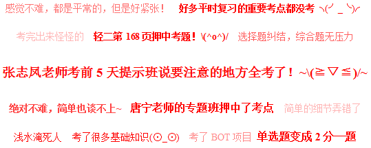 371788850:好多問題都是考前5天提示班張老師講到需要注意的,我哭啊,有些爭議性的東西,全考了!