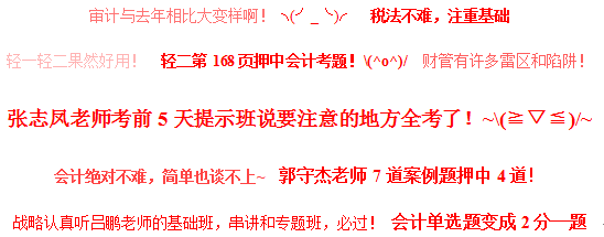 shalaku:在這里,我要特別感謝范永亮老師,張志鳳老師,劉穎老師,唐寧老師,感謝你們開啟了我對(duì)注冊(cè)會(huì)計(jì)師的了解和興趣。