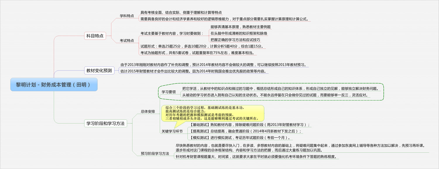 黎明計劃——田明2014注會《財務(wù)成本管理》預習導圖